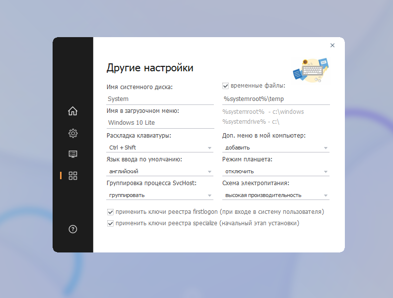 WInstAll_Lite v3.0 Bios UEFI - или сокращённо WInstAll ( облегчённая версия ) Lite - Программа для предварительной настройки и автоматической установки операционных систем Windows 7, 8, 8.1, 10, с внесением своей OEM информации, установки драйверов и установкой заранее выбранных программ. В WInstAll_Lite можно интегрировать свои образы операционных систем в формате wim, esd, swm в неограниченном количестве.